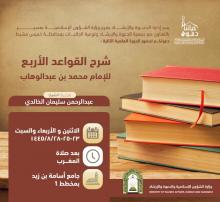 إدارة الدعوة والإرشاد بفرع وزارة الشؤون الإسلامية بعسير بالتعاون مع جمعية الدعوة وتوعية الجاليات بخميس مشيط تدعوتكم لحضور دورة علمية في شرح القواعد الأربع للإمام محمد بن عبدالوهاب لفضيلة الشيخ :عبدالرحمن بن سليمان الخالدي يوم الاثنين والأربعاء… المزيد