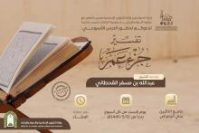 يسر إدارة الدعوة والإرشاد بفرع وزارة الشؤون الإسلامية بعسير بالتعاون مع جمعية الدعوة وتوعية الجاليات بمحافضة خميس مشيط تدعوكم لحضور الدرس الأسبوعي تفسير جزء عم يقدمه الشيخ : عبدالله بن مسفر القحطاني بجامع التائبين بحي الرصراص بعد صلاة العشاء يوم… المزيد