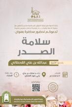 يسر إدارة الدعوة بفرع وزارة الشؤون الإسلامية بعسير بالتعاون مع جمعية الدعوة وتوعية الجاليات بخميس مشيط تدعوكم لحضور محاضرة بعنوان سلامة الصدر يقدمها الشيخ: عبدالله بن علي القحطاني بجامع مبارك بن بدي بحي العماير يوم الثلاثاء 2/ 4/ 1445هـ بعد صلاة… المزيد