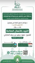 إعلان محاضرةيسر إدارة الدعوة بفرع وزارة الشؤون الإسلامية بعسير بالتعاون مع جمعية الدعوة وتوعية الجاليات بخميس مشيط تدعوكم لحضور كلمة في (الأخلاق والآداب) بعنوان التزود بالأعمال الصالحة يقدمها الشيخ: حمود سعيد بن سعد الحارثي بجامع شيخ الإسلام ابن تيمية بحي… المزيد |