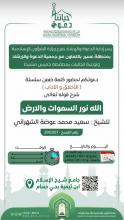 إعلان كلمةيسر إدارة الدعوة بفرع وزارة الشؤون الإسلامية بعسير بالتعاون مع جمعية الدعوة وتوعية الجاليات بخميس مشيط تدعوكم لحضور كلمة في (الأخلاق والآداب) بعنوان شرح قوله تعالى: "الله نور السموات والأرض" يقدمها الشيخ: سعيد محمد عوضة الشهراني بجامع شيخ الإسلام… المزيد |