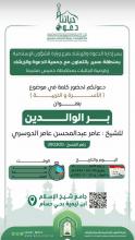 إعلان كلمةيسر إدارة الدعوة بفرع وزارة الشؤون الإسلامية بعسير بالتعاون مع جمعية الدعوة وتوعية الجاليات بخميس مشيط تدعوكم لحضور كلمة في موضوع (الأسرة والتربية) بعنوان بر الوالدين يقدمها الشيخ: عامر عبدالمحسن عامر الدوسري بجامع شيخ الإسلام ابن تيمية بحي حسام… المزيد |