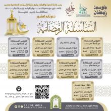 اعلان سلسلة كلماتيسر إدارة الدعوة والإرشاد بفرع وزارة الشؤون الإسلامية بمنطقة عسير بالتعاون مع جمعية الدعوة والإرشاد وتوعية الجاليات بمحافظة خميس مشيط دعوتكم لحضور السلسلة الرمضانية : |