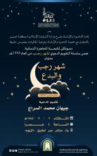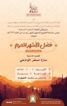 إعلان محاضرةيسر إدارة الدعوة والإرشاد بفرع وزارة الشؤون الإسلامية بمنطقة عسير بالتعاون مع جمعية الدعوة والإرشاد وتوعية الجاليات بمحافظة خميس مشيط دعوتكنّ لحضور المحاضرة النسائية بعنوان فضل الأشهر الحرم للداعية سارة مسفر الوادعي يوم الأربعاء بتاريخ 3… المزيد |