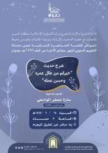 إعلان محاضرةيسر إدارة الدعوة والإرشاد بفرع وزارة الشؤون الإسلامية بمنطقة عسير بالتعاون مع جمعية الدعوة والإرشاد وتوعية الجاليات بمحافظة خميس مشيط دعوتكنّ لمتابعة المحاضرة النسائية بعنوان شرح حديث "خيركم من طال عمره وحسن عمله " تقديم الداعية ساره مسفر… المزيد |