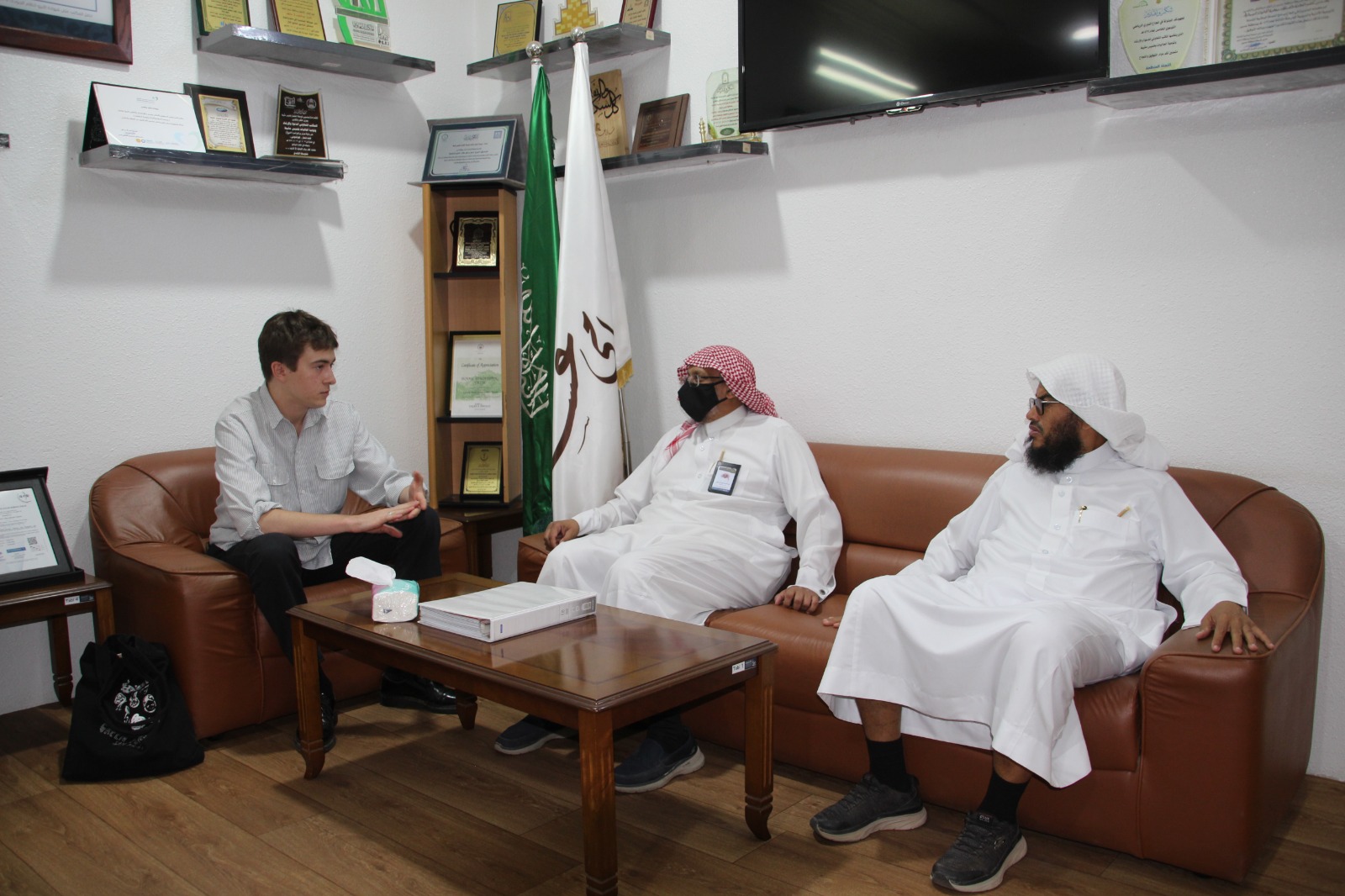 من منطلق التعريف بثقافة وتراث المنطقة بما يتوافق مع الرؤية العامة، استقبلت جمعية الدعوة والإرشاد وتوعية الجاليات بخميس مشيط الزائر/ جيسبر سكوت - أمريكي الجنسية - الباحث في الثقافة والتراث، وتم خلال اللقاء الاطلاع على الدور التوعوي والمجتمعي للجمعية وما تقدمه من خدمة للمواطن والوافد بمختلف اللغات والجنسيات، وكيف تتم رسالتها بما يتوافق مع الرؤية العامة التي توضح دور المملكة العربية السعودية الريادي في نشر وسطية الدين ونبذ الخلاف والتعصب.