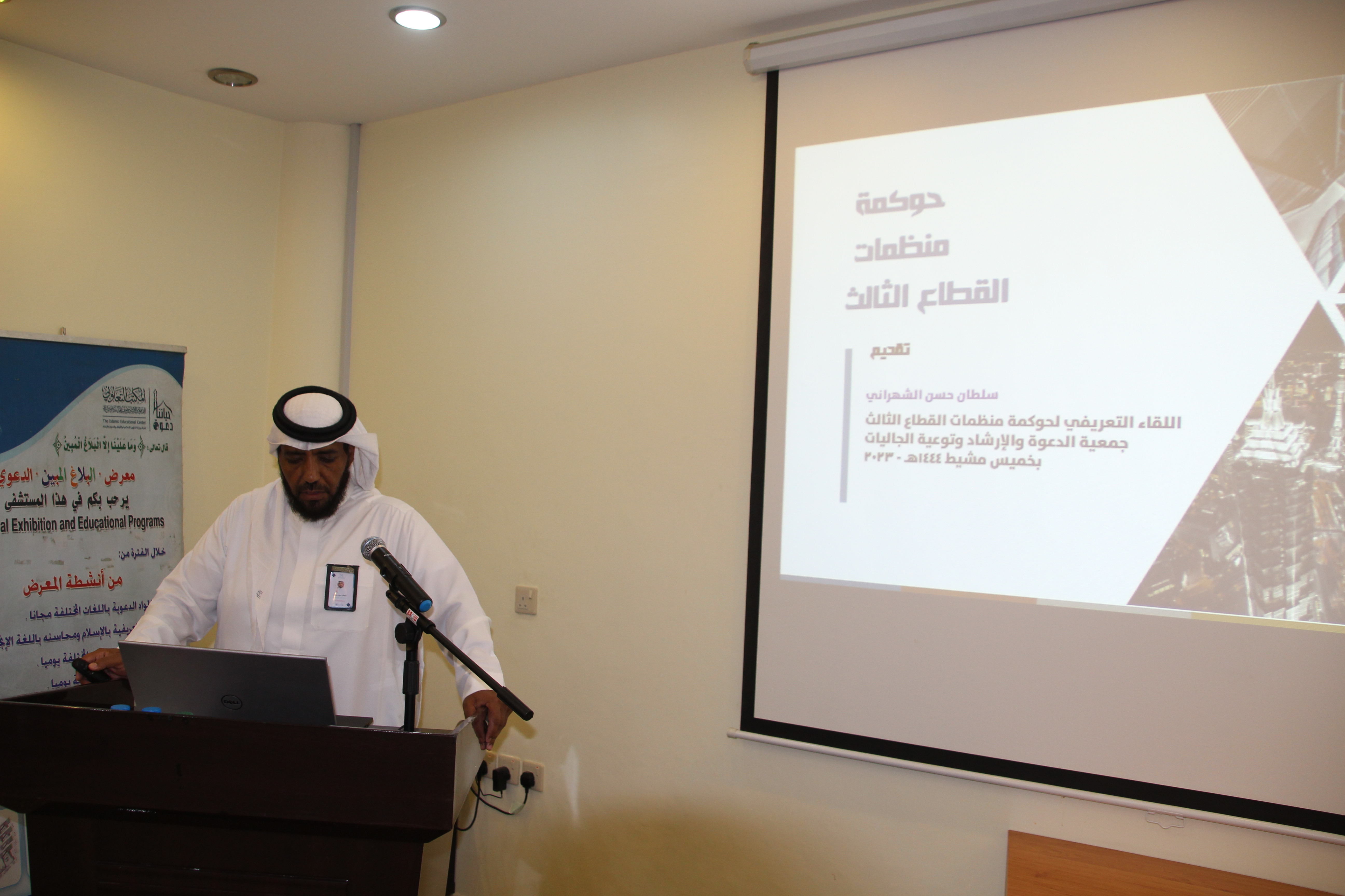 ضمن سياسة الجمعية في تطوير العاملين وإظهارهم على مستجدات أنظمة الحوكمة والأعمال الإدارية والمجتمعية قدم مدير العلاقات العامة الشيخ/ سلطان حسن الشهراني دورة عن الحوكمة، وذلك ضمن ضوابط حوكمة العمل الإدارية والفنية. ودأب الجمعية في رفع مستوى الوعي التثقيف لمنسوبيها مستمرين.