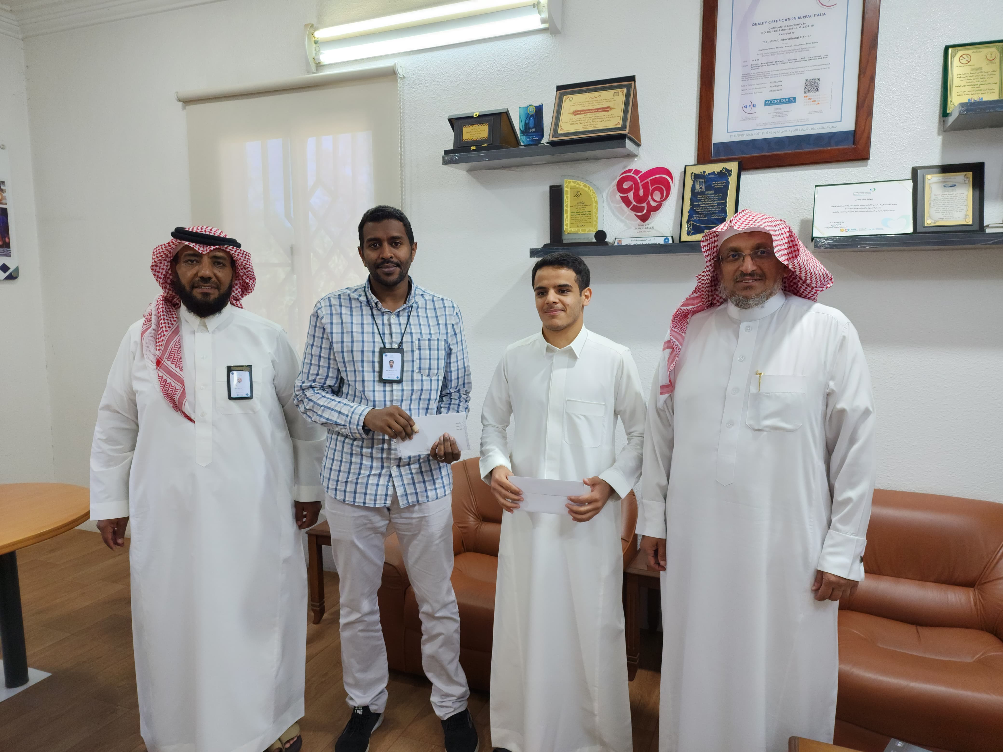 تم تكريم المتميزين بجمعية الدعوة والإرشاد وتوعية الجاليات يوم الثلاثاء الموافق 18 ربيع الاول 1445 الموافق 3 أكتوبر 2023. تقديرًا لجهودهم المتميزة وإسهاماتهم الكبيرة في تحقيق أهداف الجمعية ونجاحها في مجال الدعوة لله. حيث قدمت إدارة الجمعية مكافآت نقدية للموظفين الأكثر تميزًا وتفانيًا في عملهم. وقد تحدث مدير الجمعية عن أهمية العمل الجماعي والتعاون في تحقيق النجاح، كما أشاد بالموظفين المكرمين على مجهوداتهم والتزامهم العالي في سد الاحتياجات العملية بكفاءة واحترافية. وتعبر إدارة الجمعية عن فخرها بفريق العمل المميز الذي يعمل على تعزيز الإبداع وتقديم العمل ذات جودة عالية بمهاره. ومن جانبهم، أعرب الموظفون المكرمون عن شكرهم وامتنانهم للجمعية على تقديرها لجهودهم ودعمها المستمر لتحقيق أهدافهم المهنية.