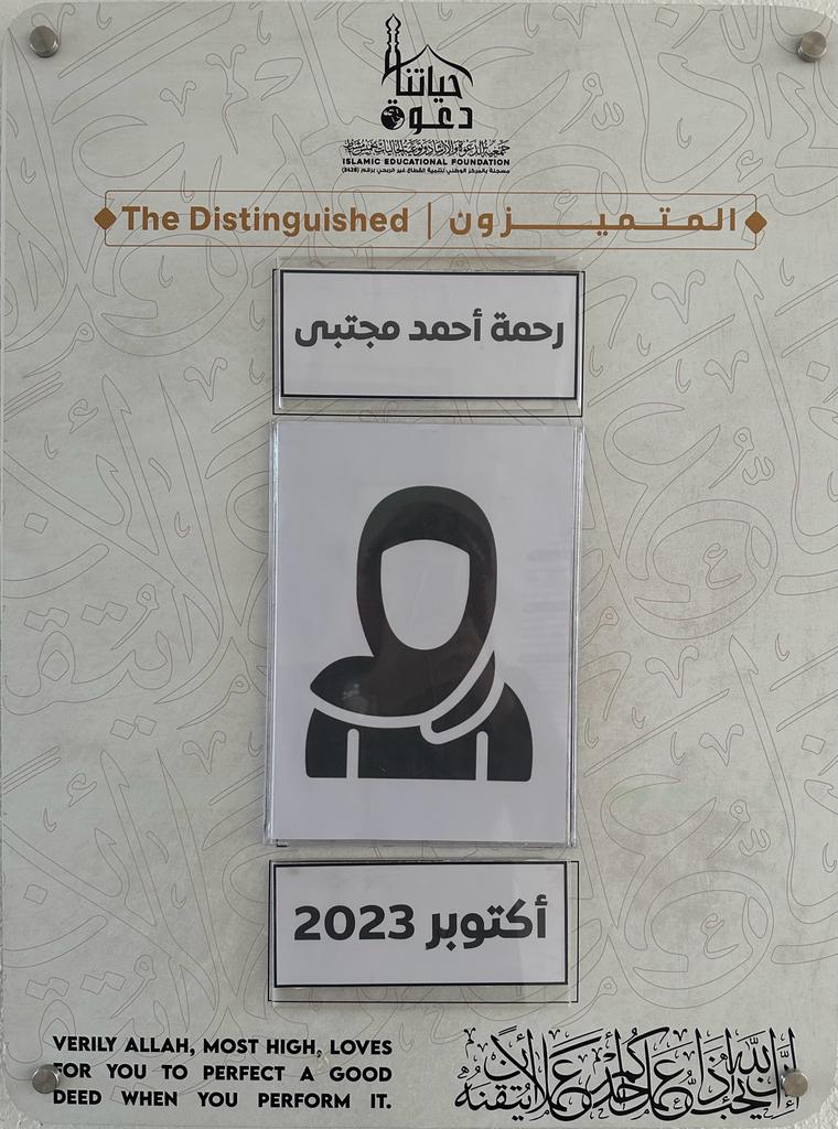 كرم مدير جمعية الدعوة والإرشاد وتوعية الجاليات ، يوم أمس، الموظف المثالي لشهر اكتوبر .. حيث قدم مدير الجمعية الشيخ عبدالكريم ال مشهور ، هدية رمزية للموظفة المثالية رحمة أحمد مجتبى على جهدها خلال الشهر المنصرم في الدعوة الإلكترونية سائلين الله لها التوفيق و السداد.